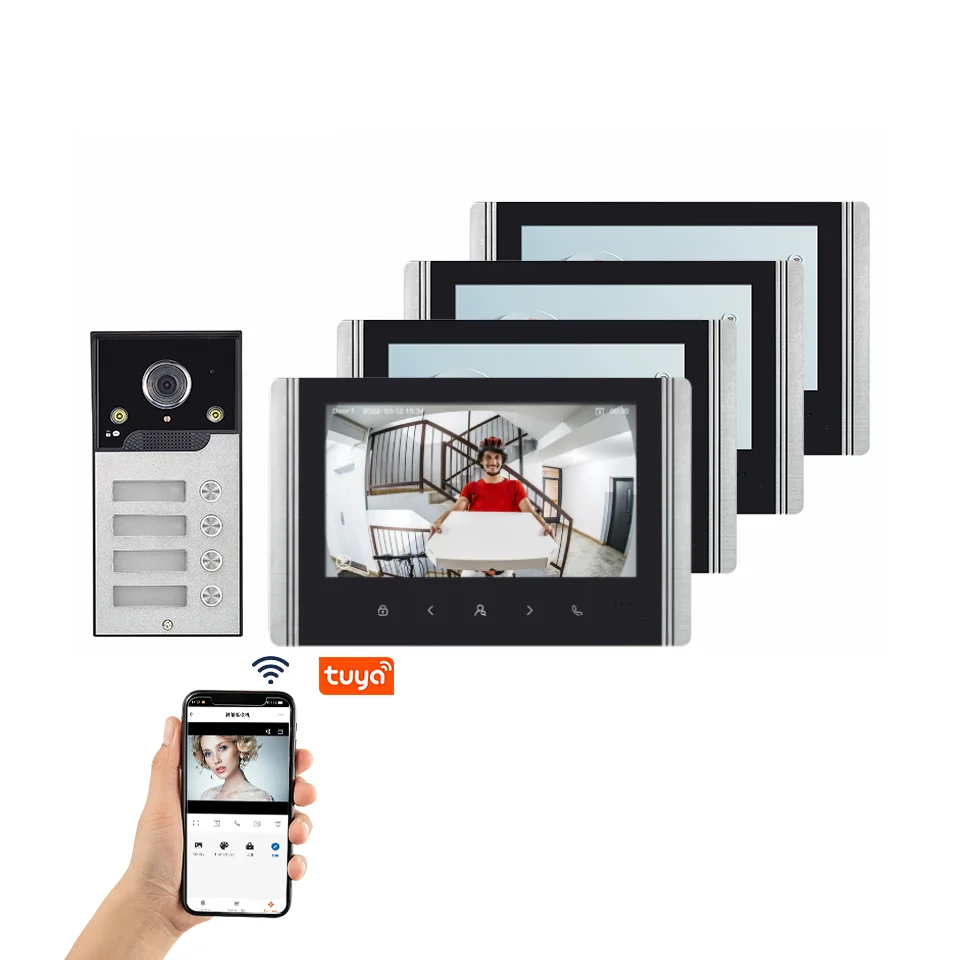 Mehrfamilige Video-Türsprechanlage Tuya Smart APP Remote Home Intercom System WiFi Video-Türklingel 7 Zoll mit kabelgebundener Türklingel