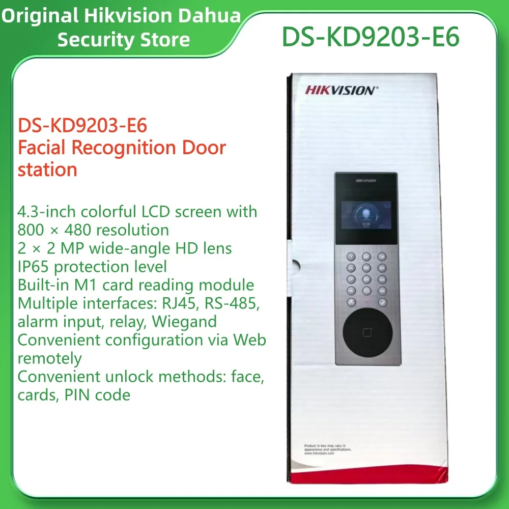 Hikvision DS-KD9203-E6 Türstation zur Gesichtserkennung, 4,3-Zoll-Bunt-LCD-Bildschirm, 2 × 2 MP Weitwinkel-HD-Objektiv, IP65