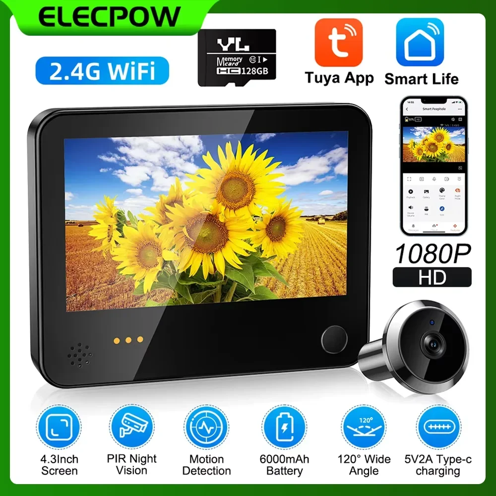 Elecpow Tuya Smart wifi Radar Digitale Tür Gucklöcher Kamera Auge 1080P 4,3 Zoll Video Türklingel PIR Nachtsicht bewegungserkennung