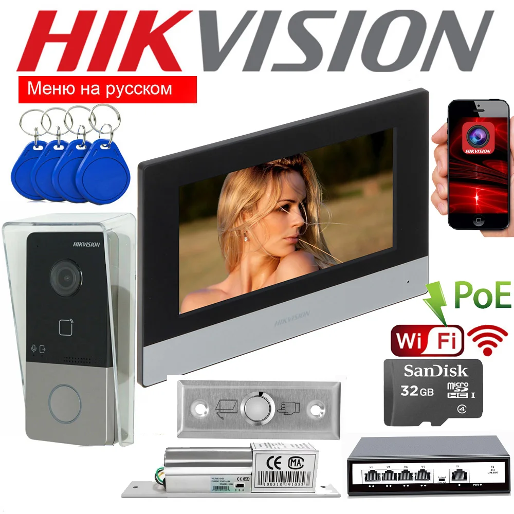 Mehrsprachiges hikvision DS-KIS603-P Video-Gegensprechanlage-Kit DS-KV6113-WPE1 (C) DS-KH6320-WTE1 POE Türklingel Türstation WIFI-Monitor