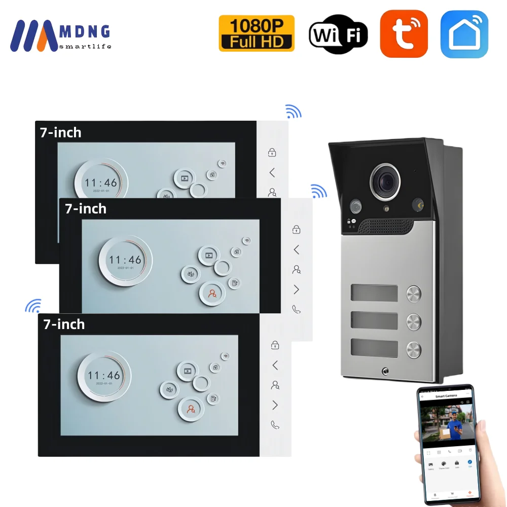 ANJIELO 2-Draht-Türklingel-Video aus Metall mit TUYA-IC-Karte, PIN-Entsperrung, 24 IP-Kamera, unterstützt intelligentes Video-Gegensprechanlage für Zuhause, 1080P