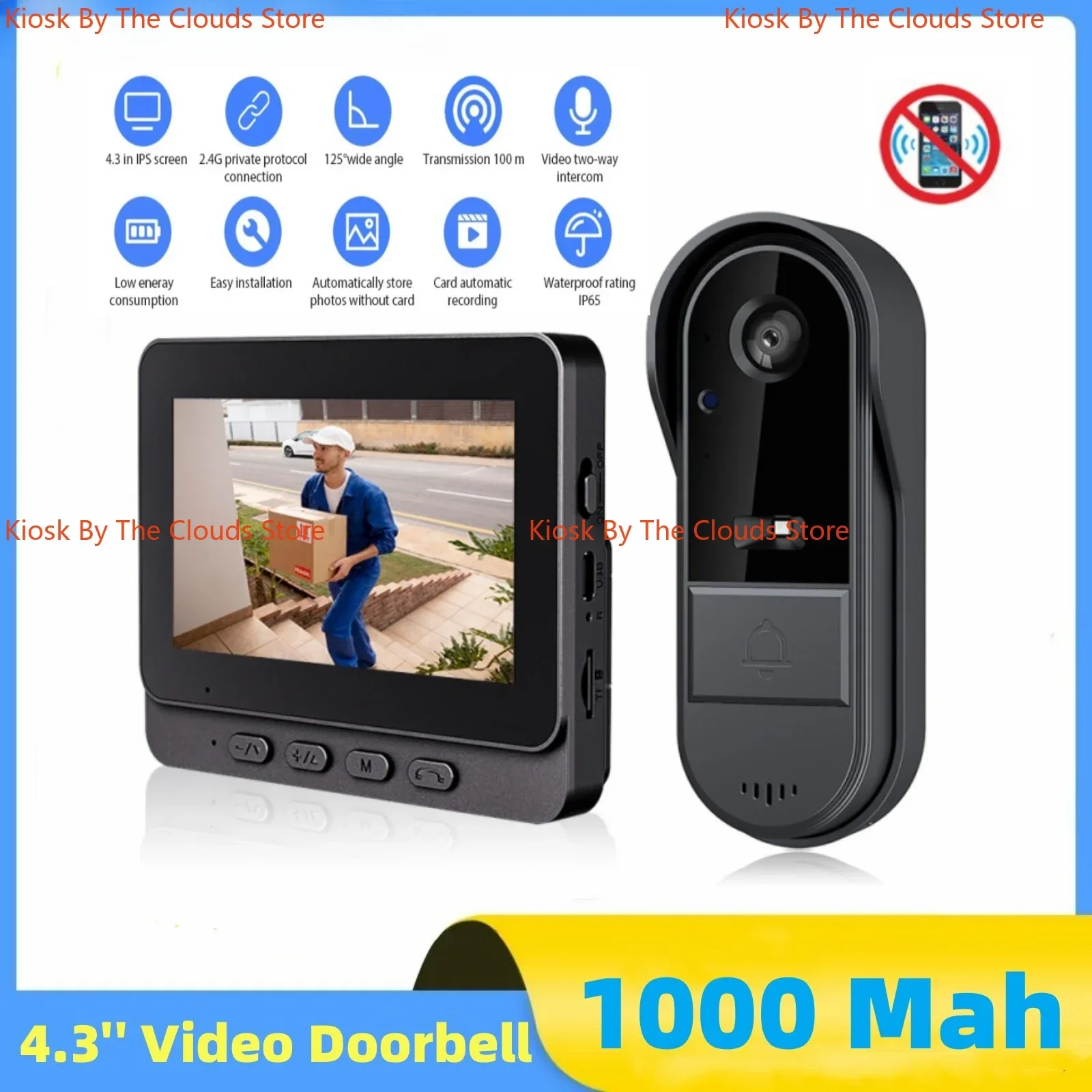 4,3 Zoll Smart Wireless Video Türklingel ips Bildschirm Infrarot Nachtsicht Zwei-Wege-Gegensprechanlage Türklingel kamera für die Sicherheit zu Hause