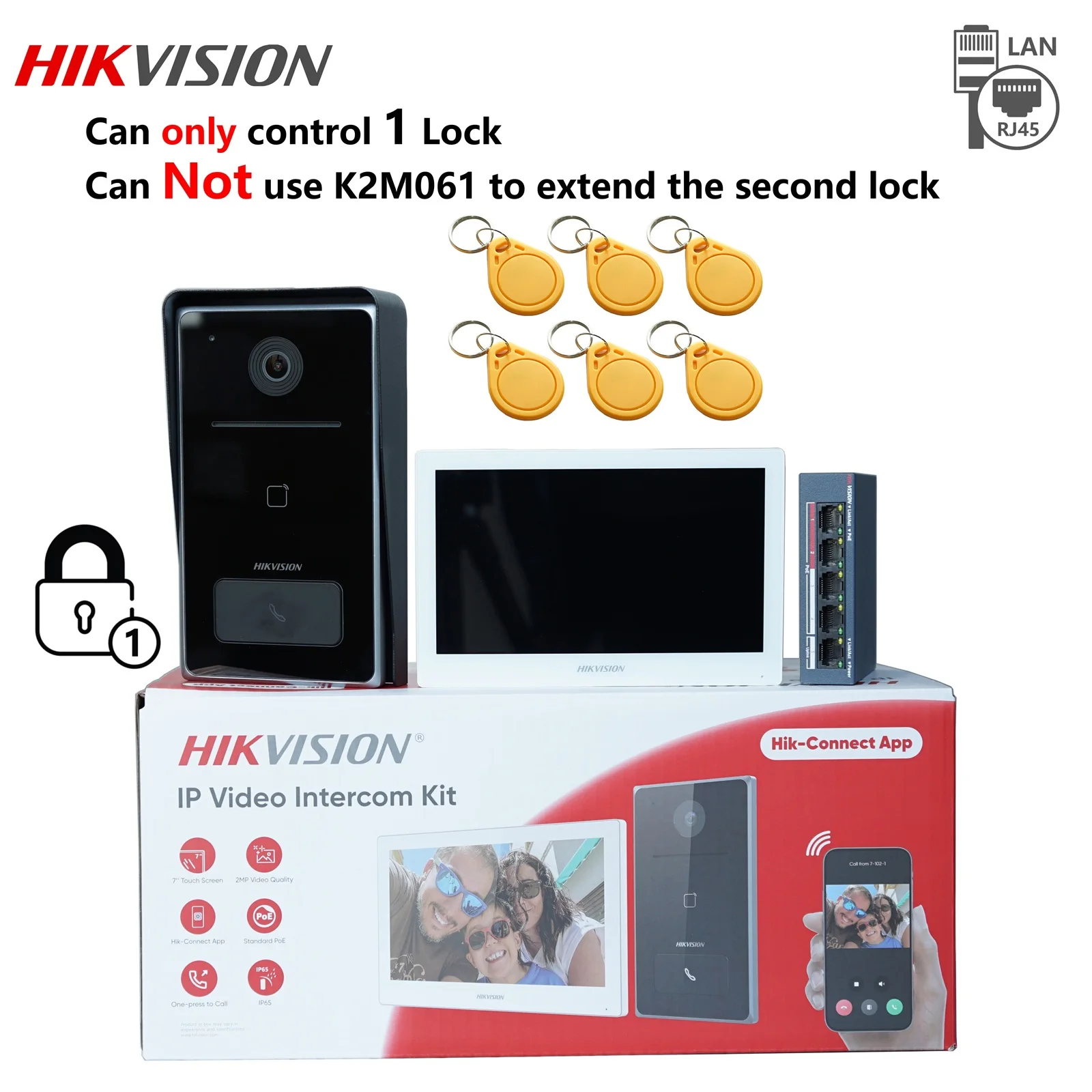 HIKVISION DS-KIS608-P Mehrsprachiges Video-Gegensprechanlage-KIT, einschließlich DS-KV6133-WME1 und DS-KH6350-WTE1 sowie PoE-Switch, Telefon-App-Anrufe