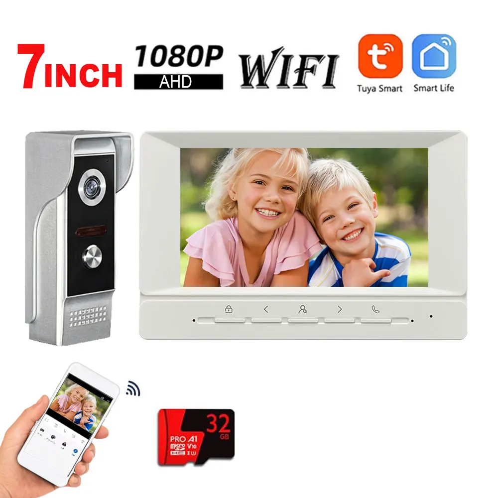 2-Draht-Video-Gegensprechanlage, 7 Zoll kabelloser WLAN-Monitor, 1080P, Türsprechanlage, Kamera, Video-Türklingel, Code, Passwort, IC-Karte, Tuya-Entsperrung