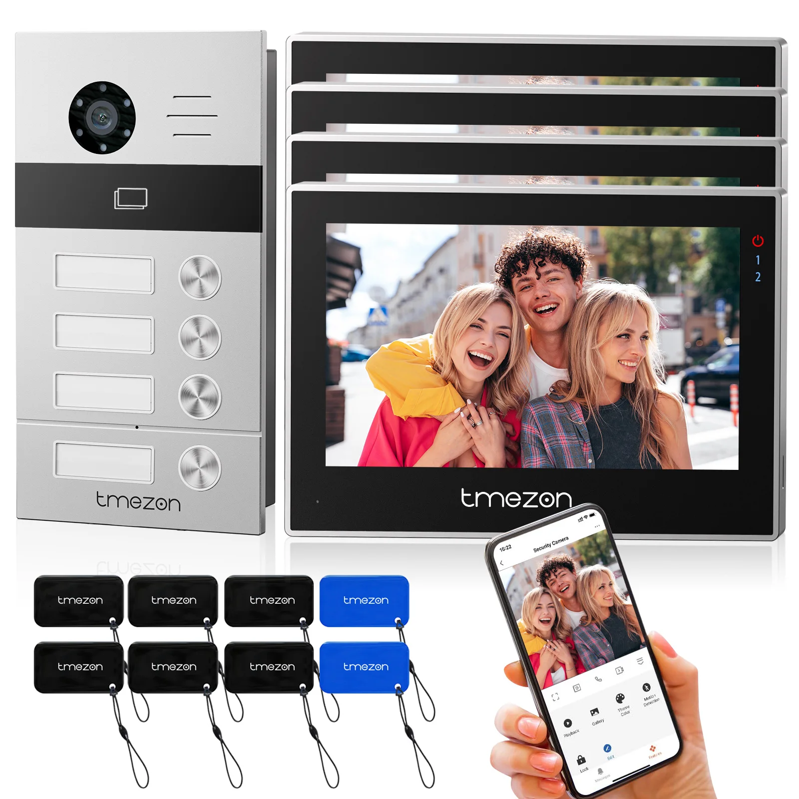2-Draht TMEZON WiFi Video-Türsprechanlage Türklingel Gegensprechanlage 7 Zoll 1080P Touchscreen-Monitor APP/Swipe/Karte 4in1 Entsperren Tuya App