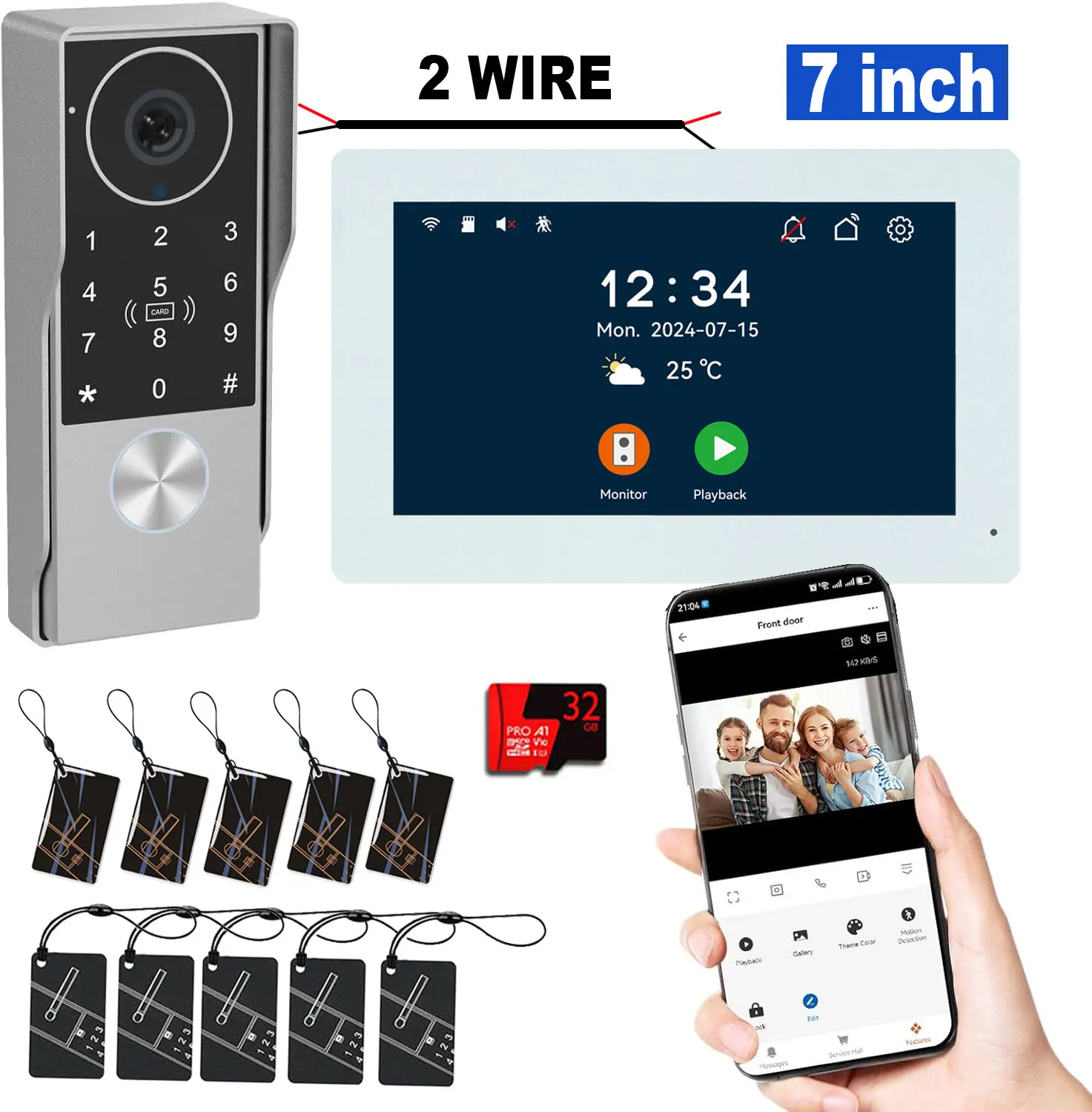 ANJIELO 2-Draht-Türklingel-Video aus Metall mit TUYA-IC-Karte, PIN-Entsperrung, 24 IP-Kamera, unterstützt intelligentes Video-Gegensprechanlage für Zuhause, 1080P