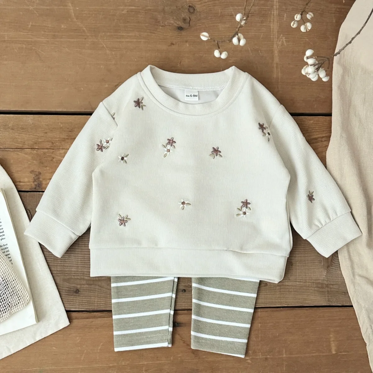 Herbst Kleinkind Mädchen Outfit Blumenstickerei Langarm-Sweatshirt Elastische Taille Hose Frühlings-Set Kleidung Baby Mädchen