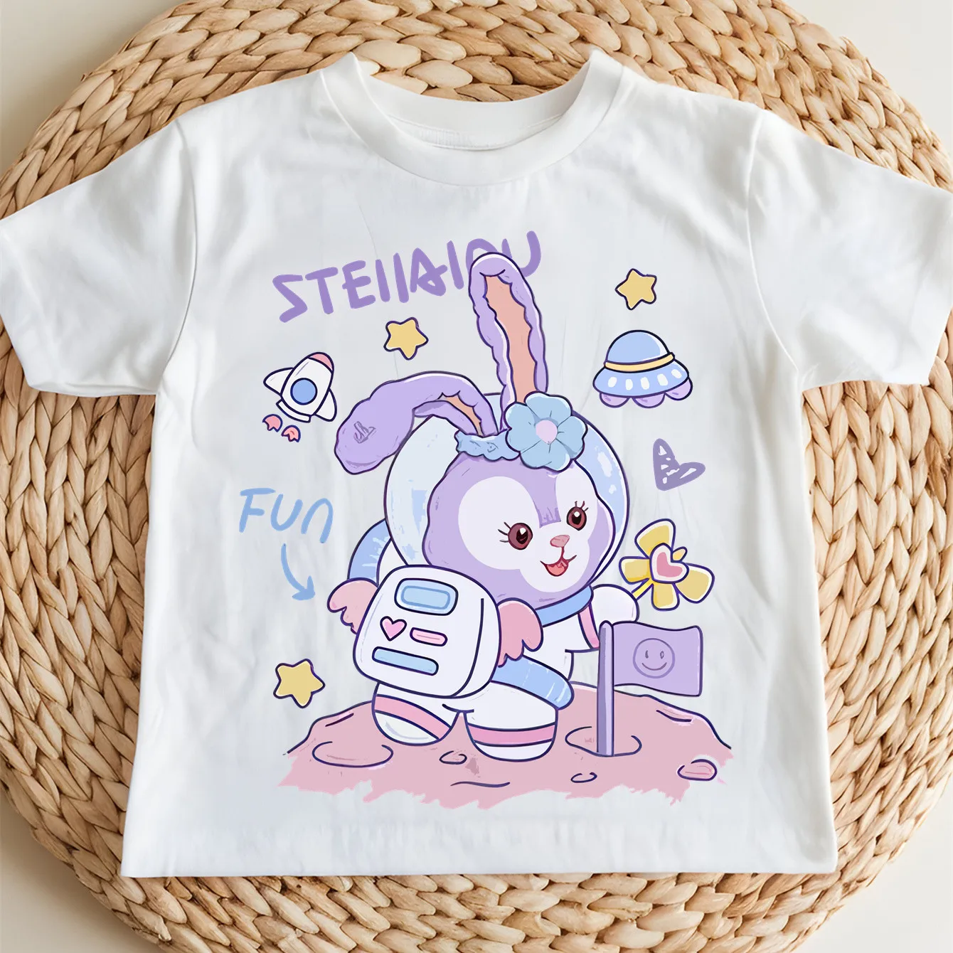 Astronaut StellaLou Print Reine Baumwolle Kinder Base Clothe Junge/Mädchen Bequemes T-Shirt Outdoor O-Ausschnitt Kurzarm T-Shirt