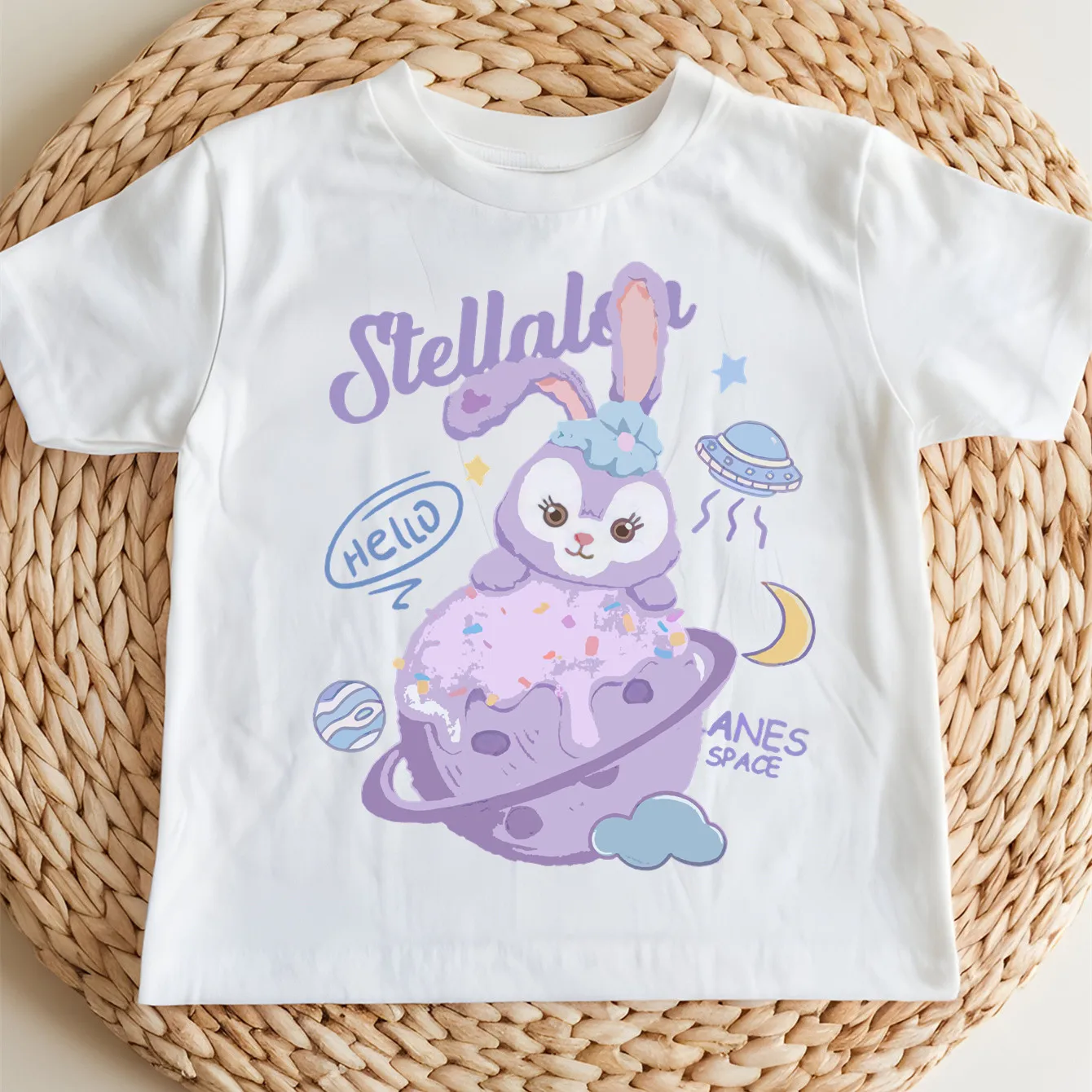 Hallo süßer StellaLou-Aufdruck, 100 % Baumwolle, Kinder-Basiskleidung, bequemes T-Shirt für Jungen/Mädchen, Outdoor-T-Shirt mit O-Ausschnitt und kurzen Ärmeln