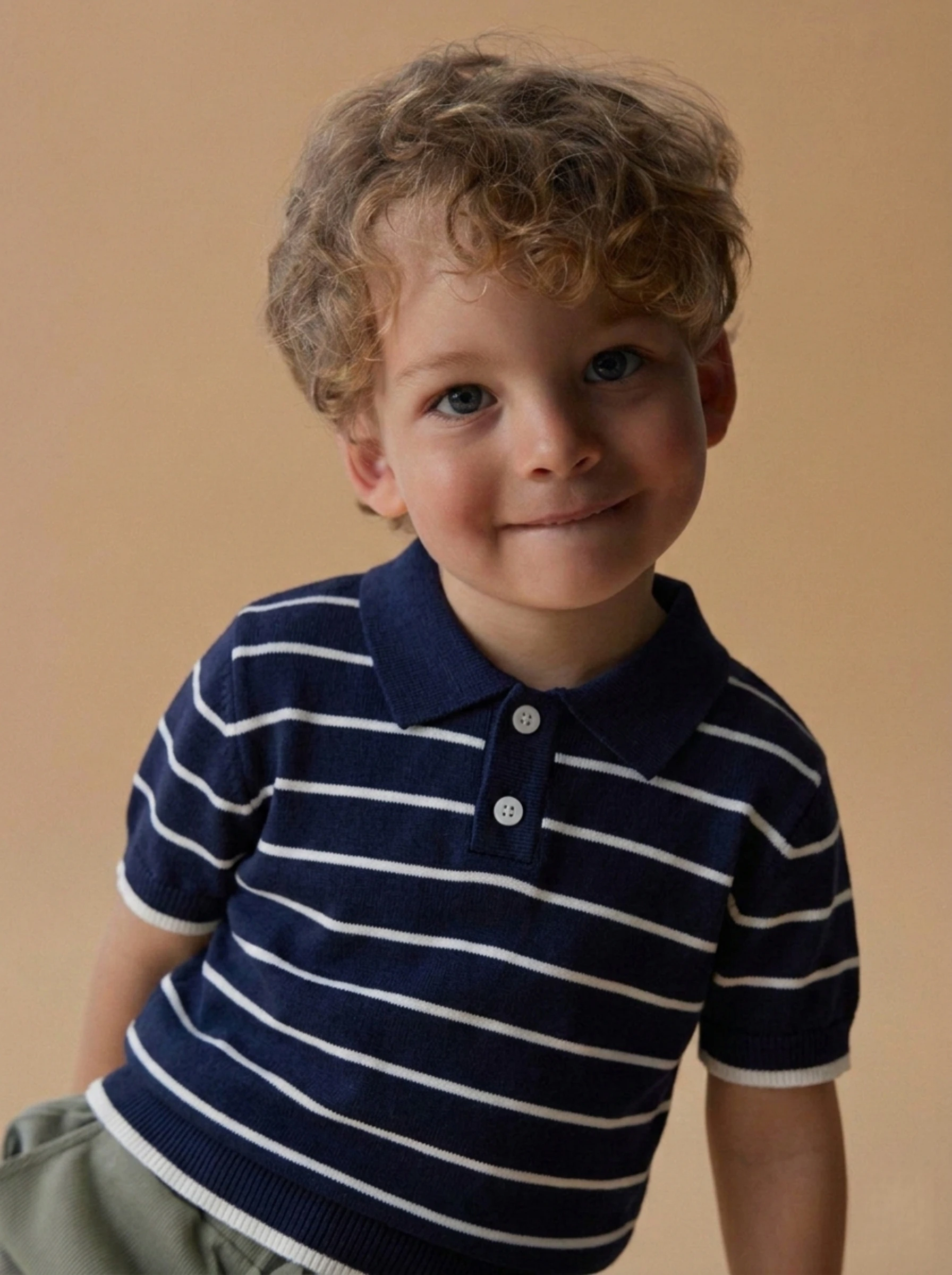 Jungen College-Style Farbblock-Poloshirt mit Streifen, Kurzarm, dünner Strickpullover mit offenen Knöpfen