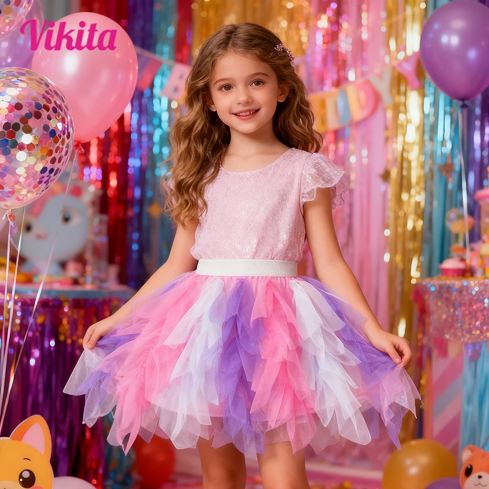 VIKITA Mädchen Layered Tutu Röcke Kinder Bunte Mesh Tüll Prinzessin Geburtstag Party Leistung Ballett Flauschigen Kuchen Rock Outfits