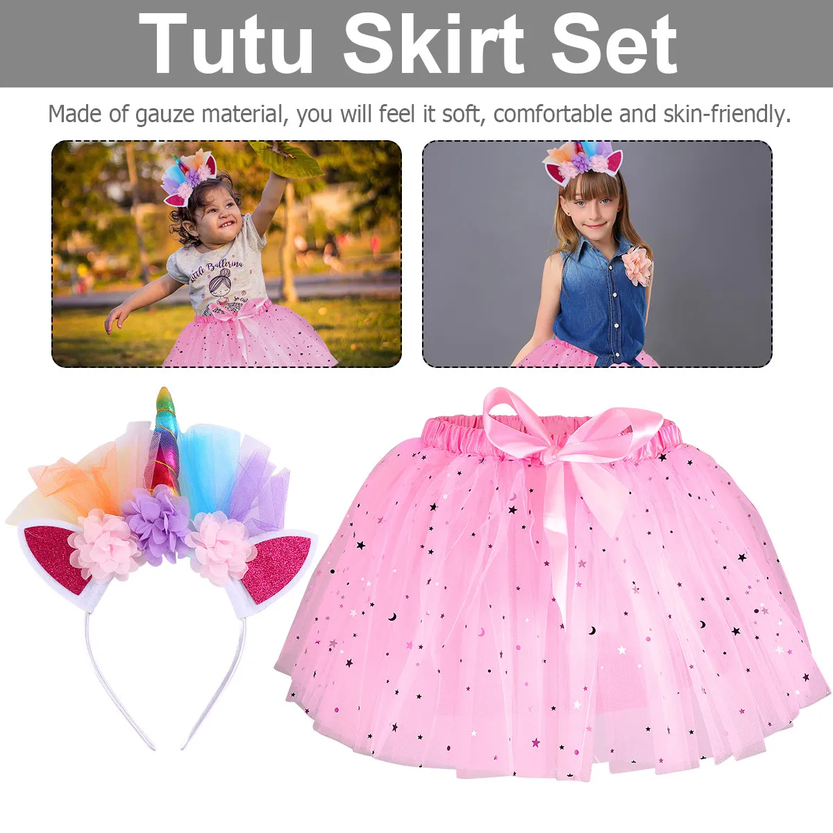 1Set Kinder-Tutu-Rock-Set, bunter, mehrschichtiger Netzrock, elastische Taille, weicher Stoff, Party, Halloween, Cosplay-Kleid