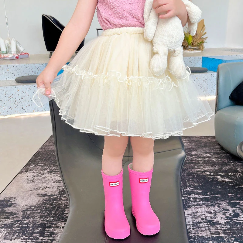 97BE Stilvoller Tüllrock für kleine Mädchen, elastische Taille, dreilagiger Furzvorhang, stapelbarer kurzer Rock für Kinder,