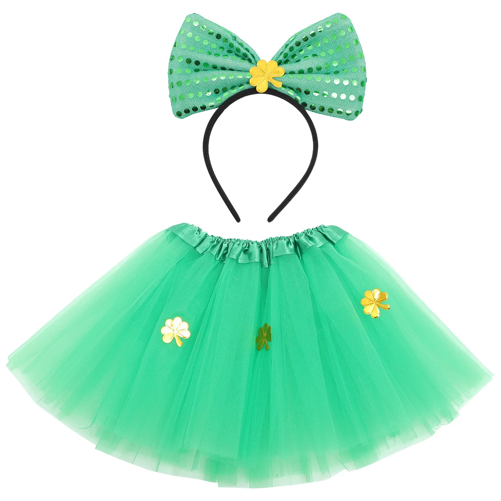 3-lagiger Kleeblatt-Tüll-Tutu-Rock für Mädchen, 100–110 cm, St. Patrick's Day-Kostüm, Verkleidung, Party, Laufen, Tanzen, Marathon, grüner Tutu