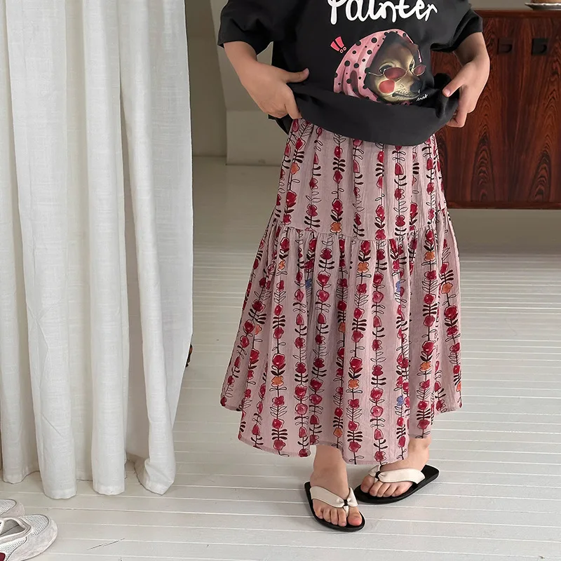 Kinder Kleidung Mädchen Modische Elegante Alle Spiel Rock 2025, Sommer Neue Mädchen Casual Temperament Urlaub Stil Blumen Rock