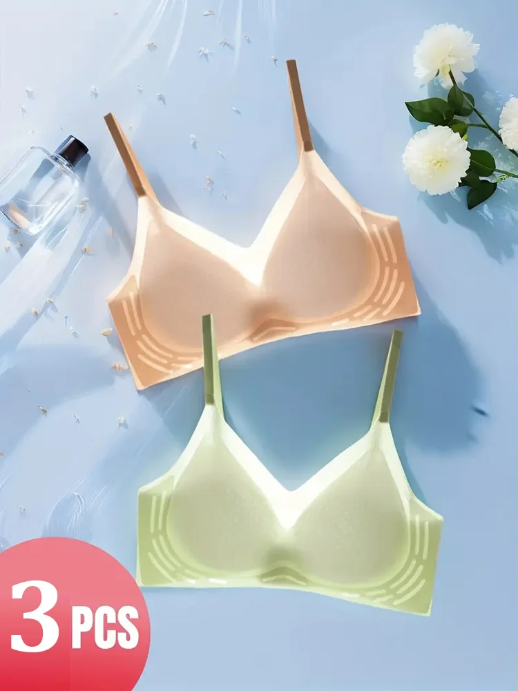 3Pcs Frau Ultra-dünne Bh Eis Seide Bh Nahtlose M-4XL Mädchen Sport Mädchen Bh Einfarbig Damen Luft kühlung Drahtlose Brassier