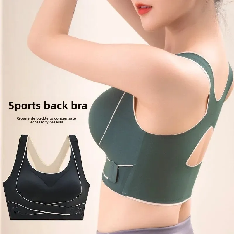 Nahtloser Push-Up-Sport-BH für Damen, ungepolsterter, bügellosen Yoga-BH mit seitlichem Verschluss, Rückenstütze, schlankmachendes Design