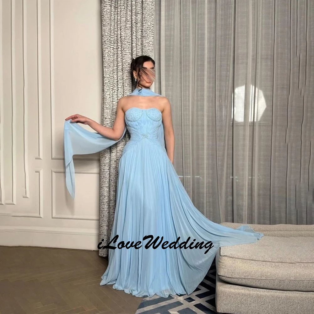Maßgeschneidertes Gala-Kleid Damen-Abendkleid Luxuriöses Perlenbesetztes Abendkleid 2026 Ärmelloses Himmelblau Damen-Partykleid aus Chiffon