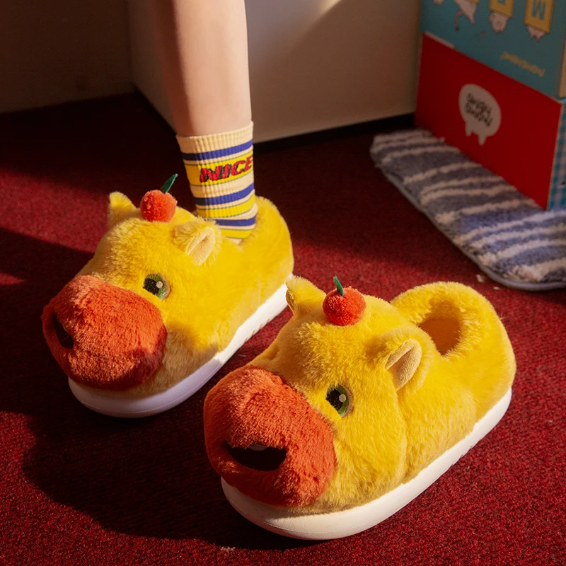 Niedliche Capybara-Plüsch-Hausschuhe für Drinnen und Draußen, Warme Rutschfeste Geschlossene Damen-Hausschuhe für Herbst und Winter, Baumwoll-Pantoffeln