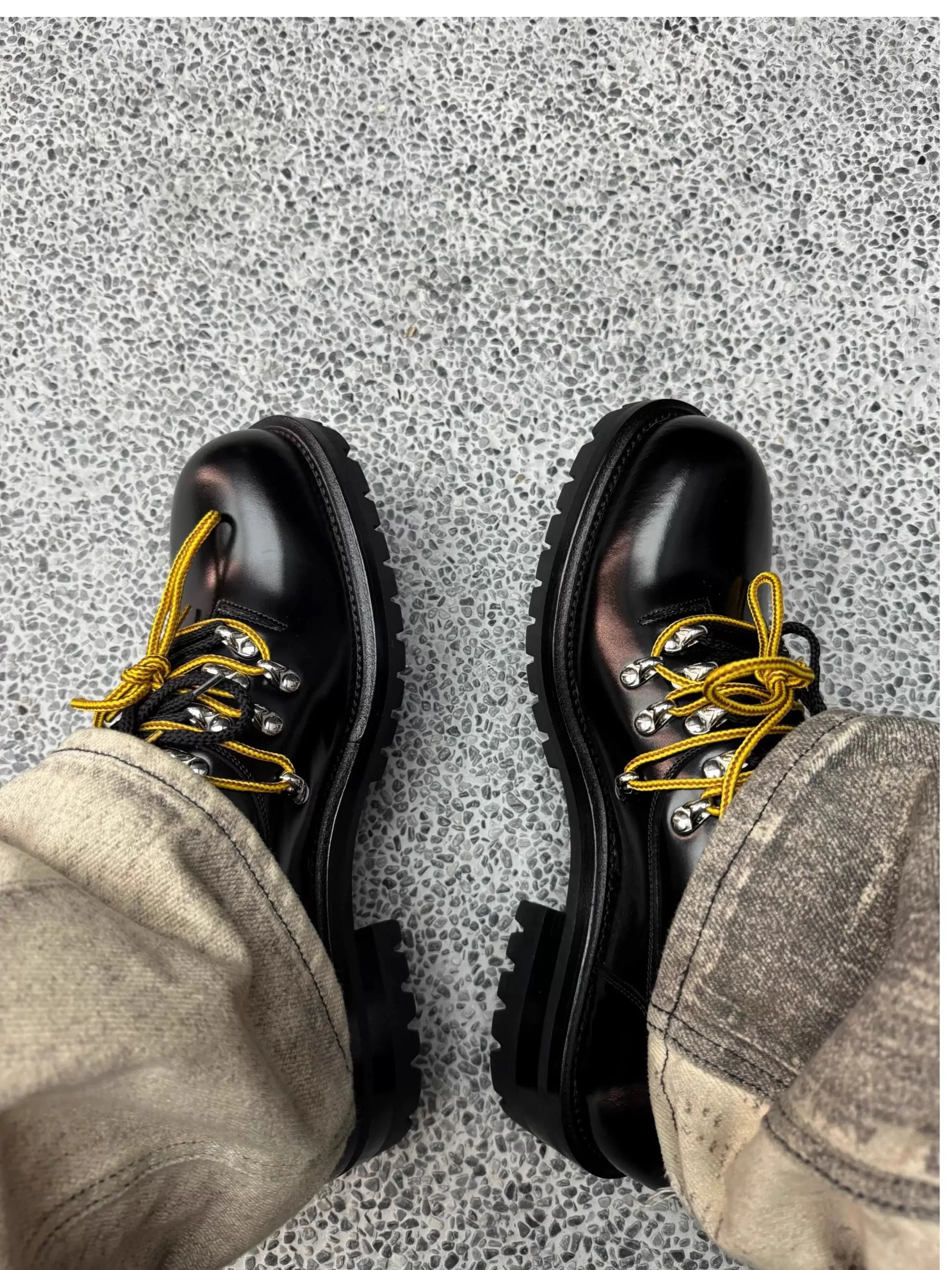 Schwarze Retro-Herrenschuhe mit dicken Sohlen für Herren, Metallnieten-Dekor, Derby, niedriger Absatz, runde Zehen, zweifarbige Schnürsenkel, lässige Lofers im britischen Stil