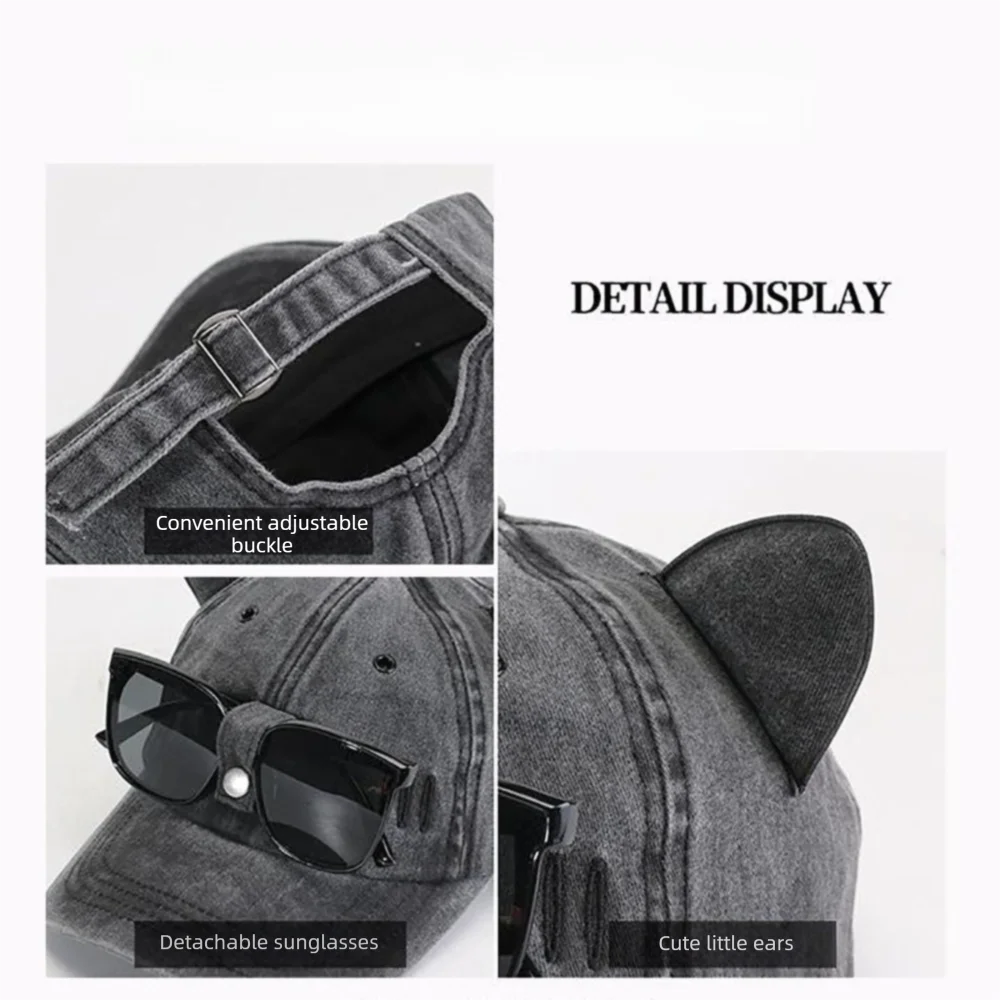 Trendige Baseballkappe mit niedlichen Katzenohren, lässige, verstellbare Entenschnabelmütze, Sonnenschutz, atmungsaktive Sonnenhüte für den Außenbereich