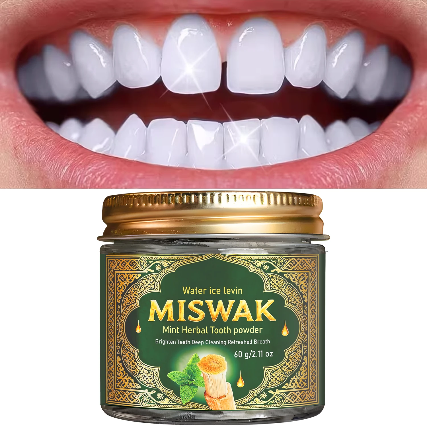 MISWAK Minze Kräuter-Zahnpulver, Tiefenreinigung & Aufhellung mit Aktivkohle & Hyaluronsäure für Frischen Atem