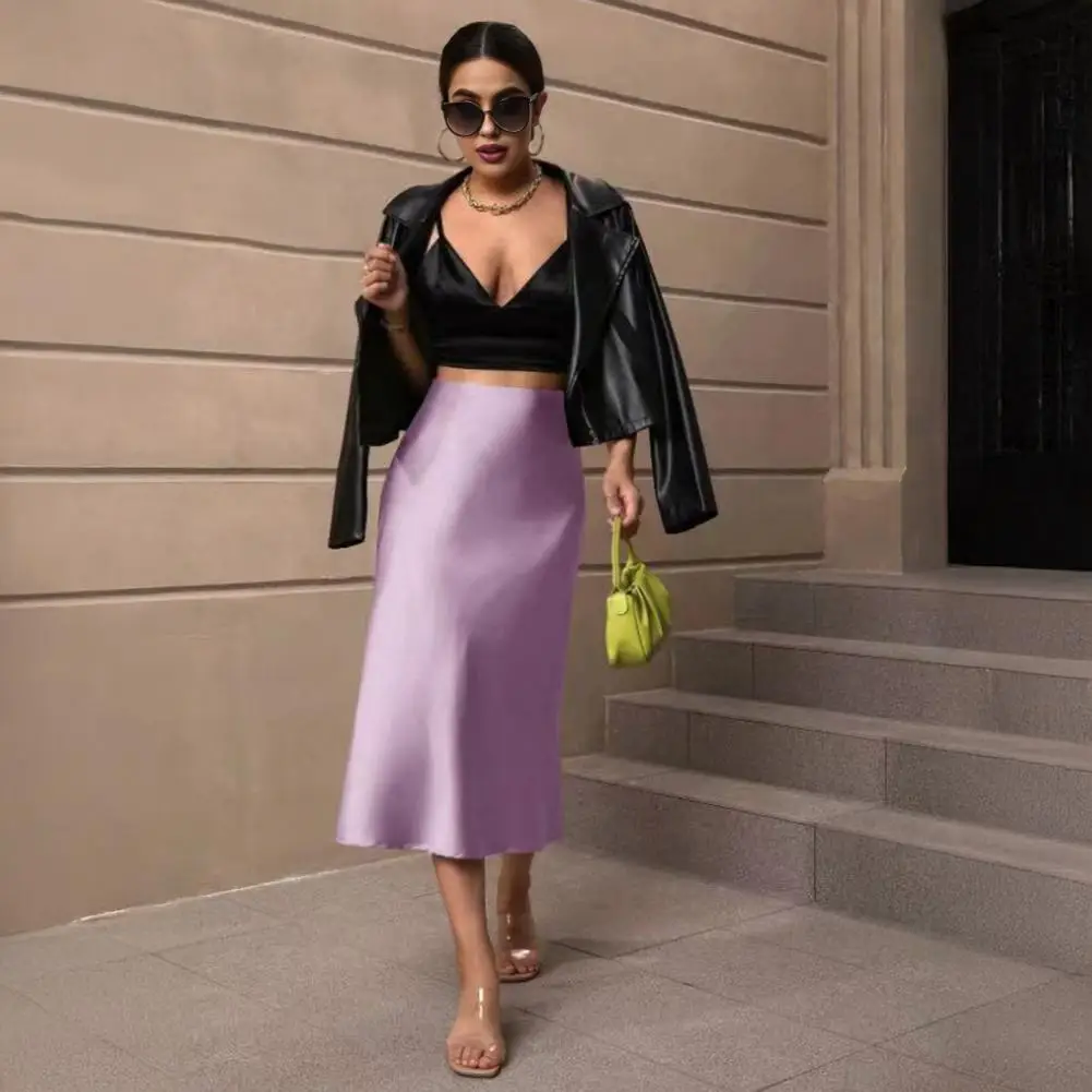 Damen Midirock mit Hoher Taille aus Glattem Satin mit Fischschwanzsaum Schlankmachender Rock für Reisen, Partys, Arbeit, Freizeit und Alltag