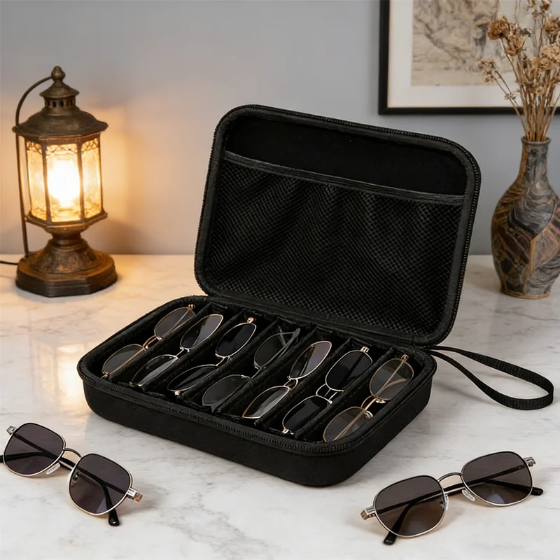 Tragbares Brillenetui mit Verstellbarem Trennfach für 6-7 Paar Brillen oder Sonnenbrillen Kompakter und Schützender Organizer