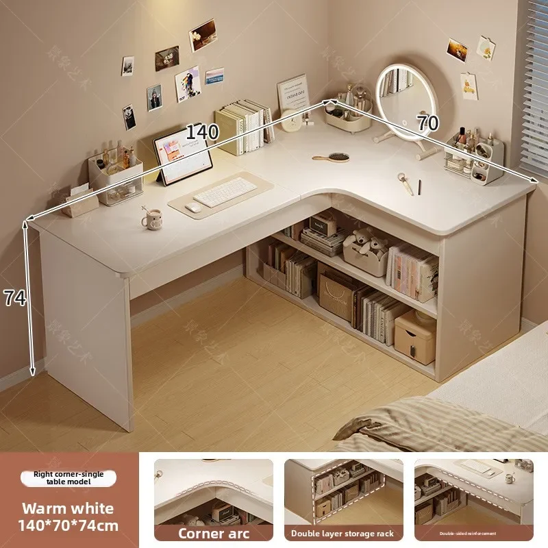 Stabiler Computertisch, Bücherregal, integrierte Eckarbeitsplatte, weißer Eck-Lern- und Schreibtisch ab Werk