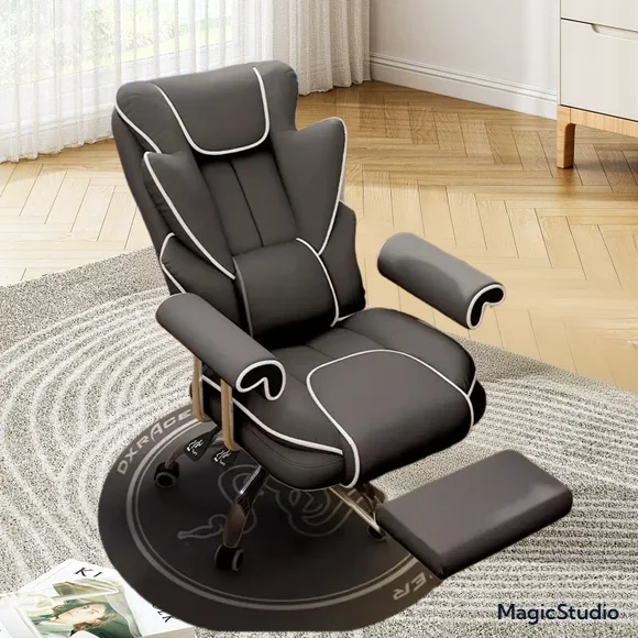 HOMCOM Silla de Escritorio con Reposapiés Respaldo Reclinable and Alto Asiento y Reposabrazos Anchos Acolchado Grueso Gris Oscuro