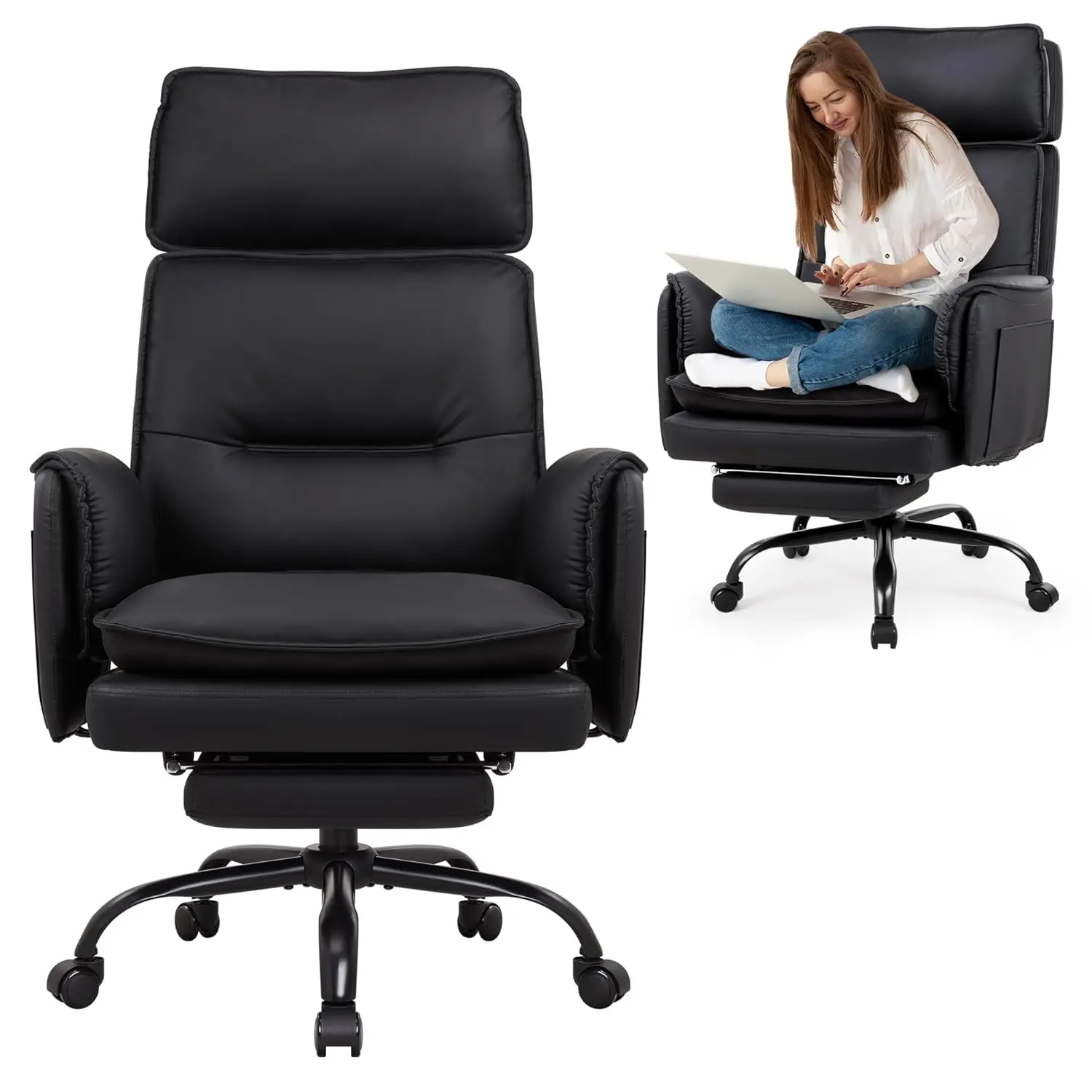 Ergonomischer Bürostuhl, 227 kg, XXL-Chefsessel aus Kunstleder mit Fußstütze, Schreibtischstuhl mit höhenverstellbarer Kopfstütze, 135 °