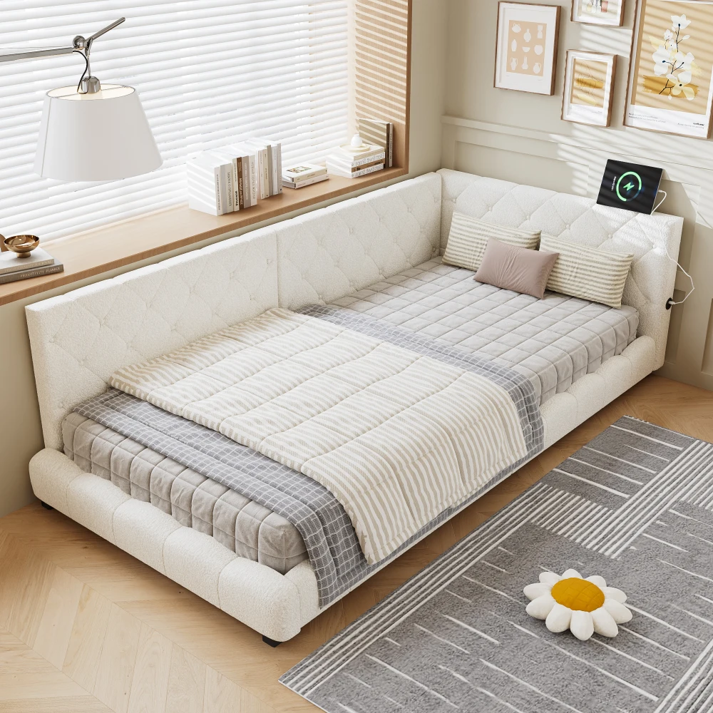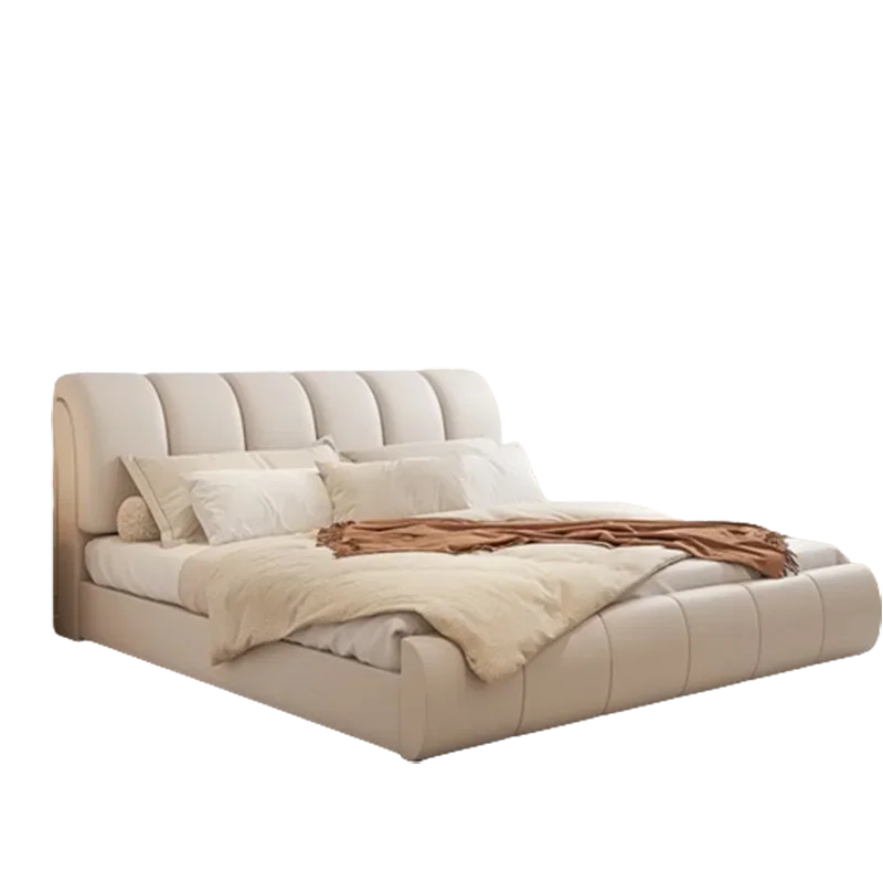 Gepolstertes Doppelbett in Verschiedenen Größen mit Ausziehbarem Stauraum & Nordisch Einfaches Modernes Minimalistisches Lederbett in King Size und Queen Size