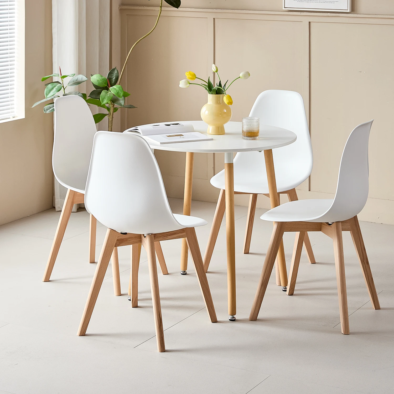 Neue französische Esstisch- und Stuhlkombination aus Massivholz für den kleinen Hausgebrauch mit Drehteller im hochwertigen mittelalterlichen Stil aus Eschenholz