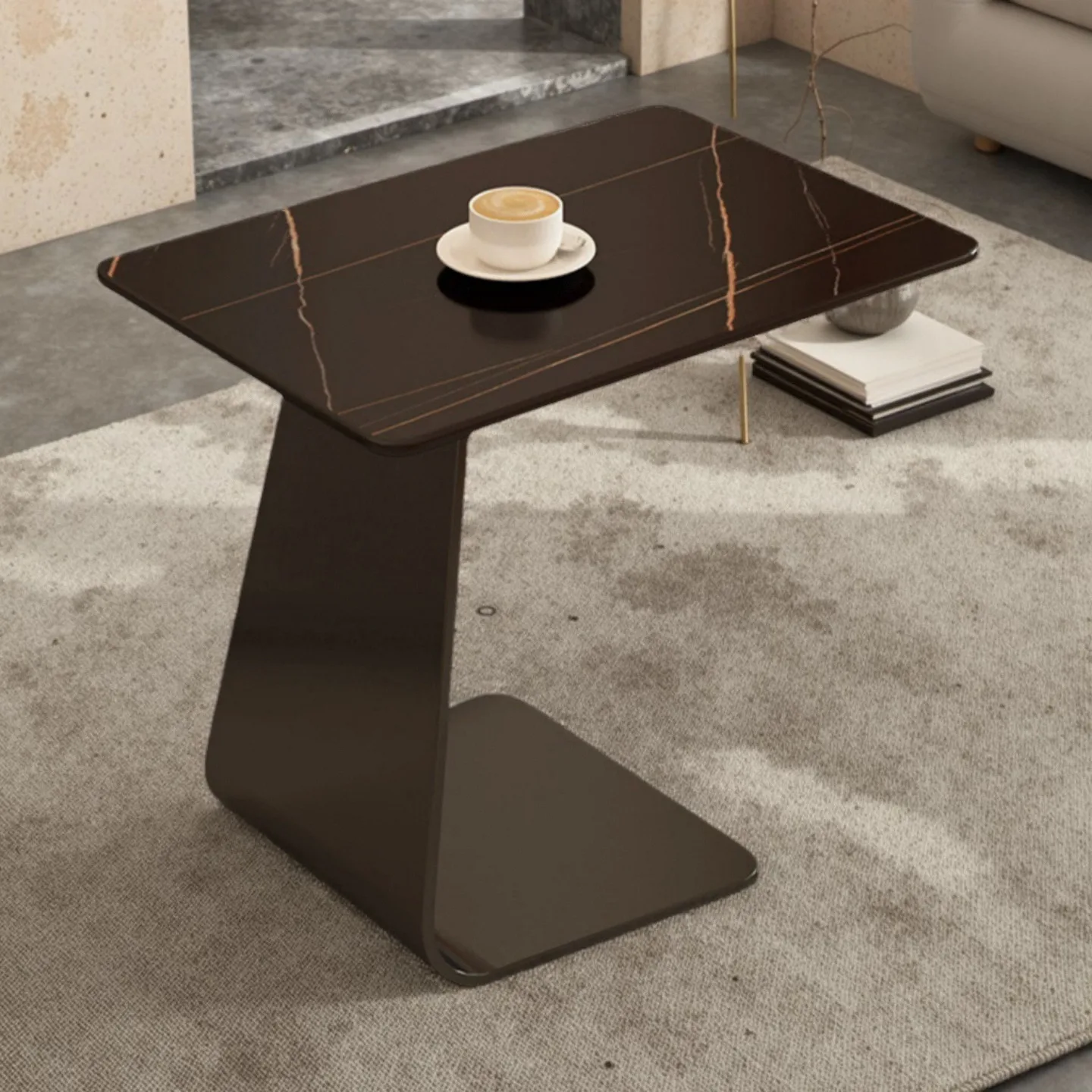 Couchtisch aus Felsplatte, Schmiedeeisen, für kleine Wohnungen, Sofa, seitlicher Balkon, Teetisch, Empfang, Verhandlungstisch, Möbel