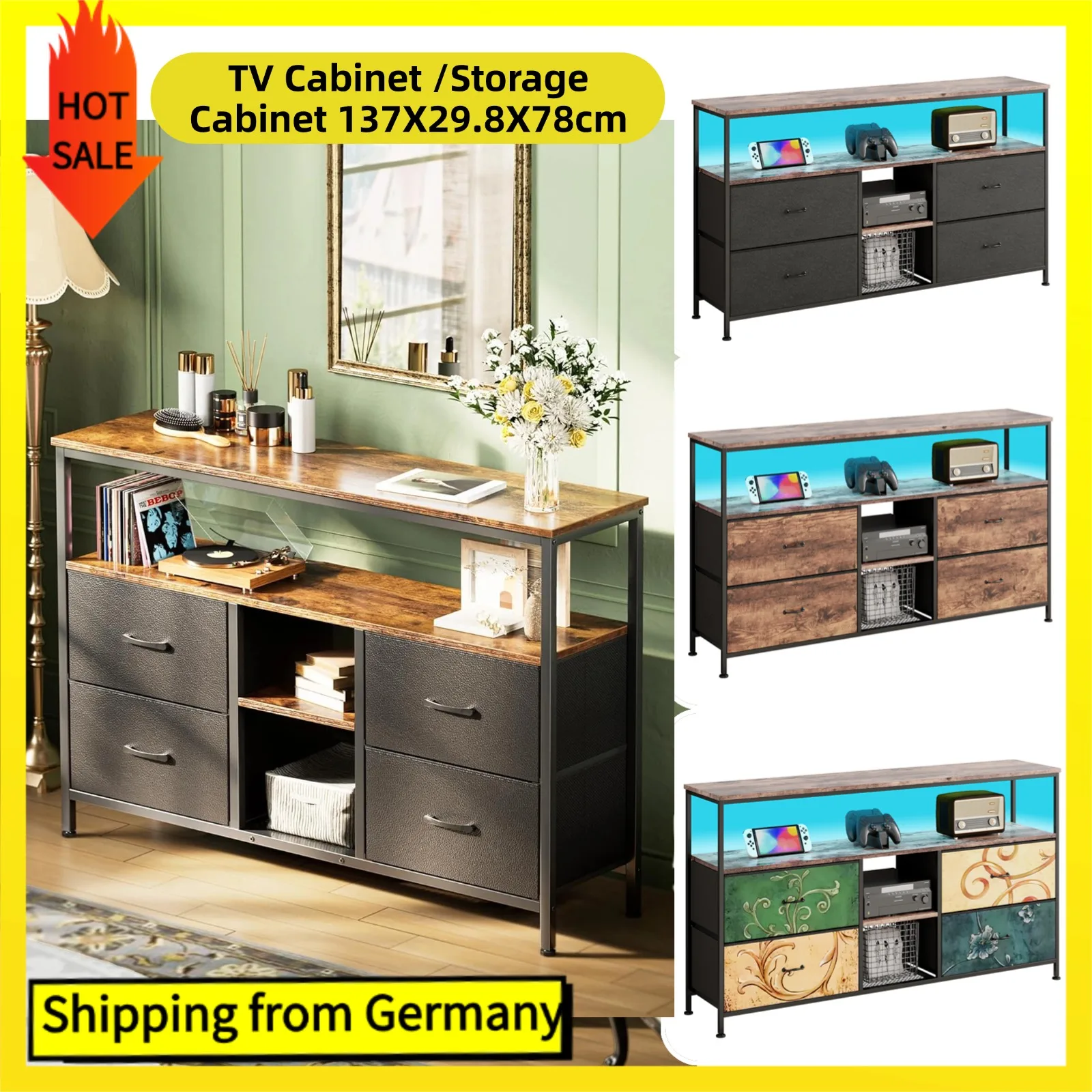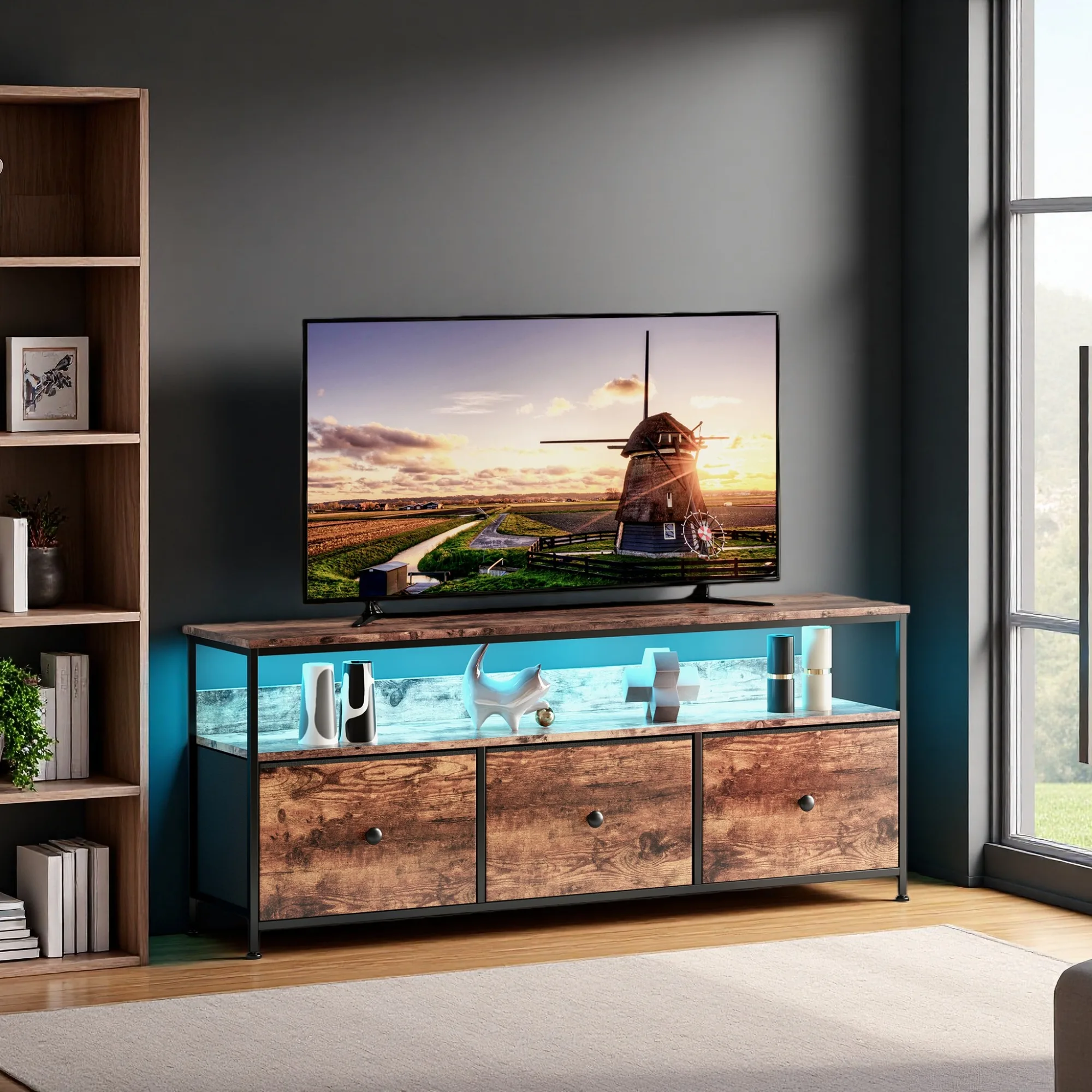 TV-Schrank für Fernseher bis 65 Zoll, TV-Möbel mit 4 Schubladen und 2 offenen Regalen, für Wohnzimmer, Schlafzimmer, Unterhaltungsraum, Rustikales Braun
