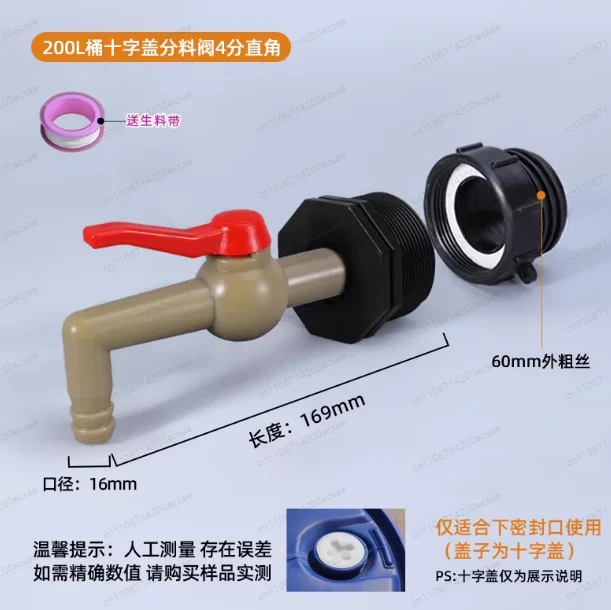 200L Fasshahn mit Kreuzdeckel, Kunststoff-Fasshahn, Großdurchflussventil für Öl- und Chemikalfässer, Auslaufsicher, Einfach zu Bedienen