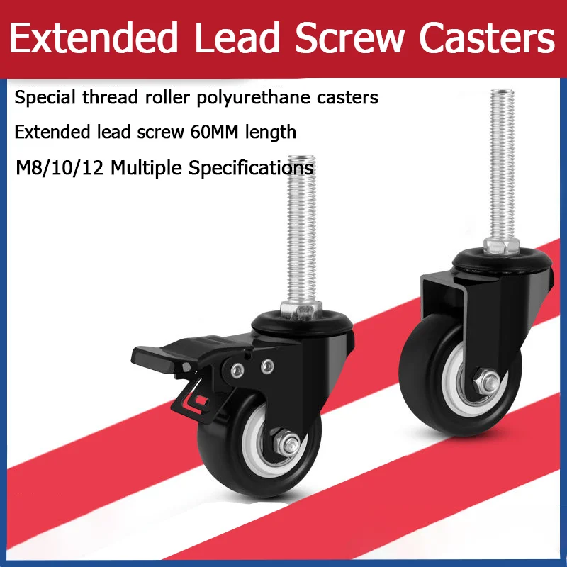 1PCS Leitspindel Lenkrolle 1,5/2 Zoll M8/10/12 verlängerte Leitspindel Doppellager verschleißfeste Möbel stille Rollen