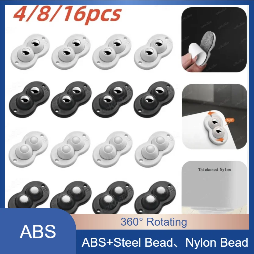 4/8/16 Stück selbstklebende Lenkrollen – 360° ° Rotierende klebrige Riemenscheiben aus Edelstahl und Nylon für Möbel und Aufbewahrungsboxen