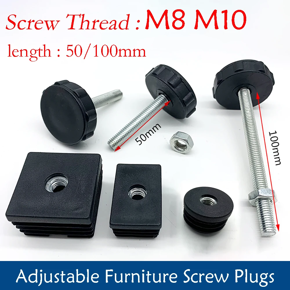 M8 Schwarze quadratische/runde Kunststoff-Rohrstopfen, verstellbare Schraube, Fußpolster, Möbelbeinabdeckung, Endkappen, 20 x 20–50 x 50 mm/20–50 mm