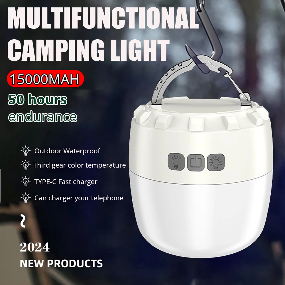 2024 new15000mah Camping Licht USB wiederauf ladbar Stunden mit 3 Farben Taschenlampe für Outdoor Zelt Lampe Magnet Not laterne