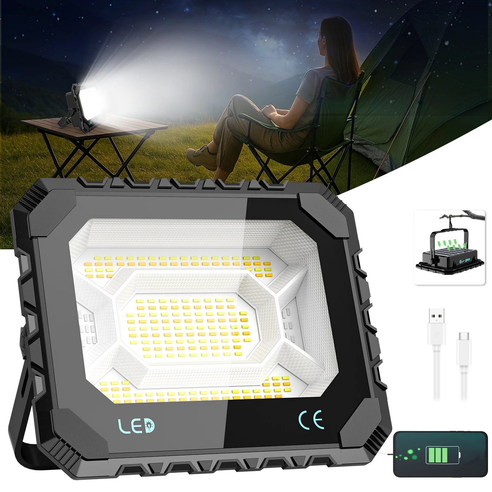 100W LED Baustellenstrahler 10000LM Solarbatterie 12000mAh USB Wiederaufladbar 5 Modi IP66 Tragbare Outdoor-Campinglampe
