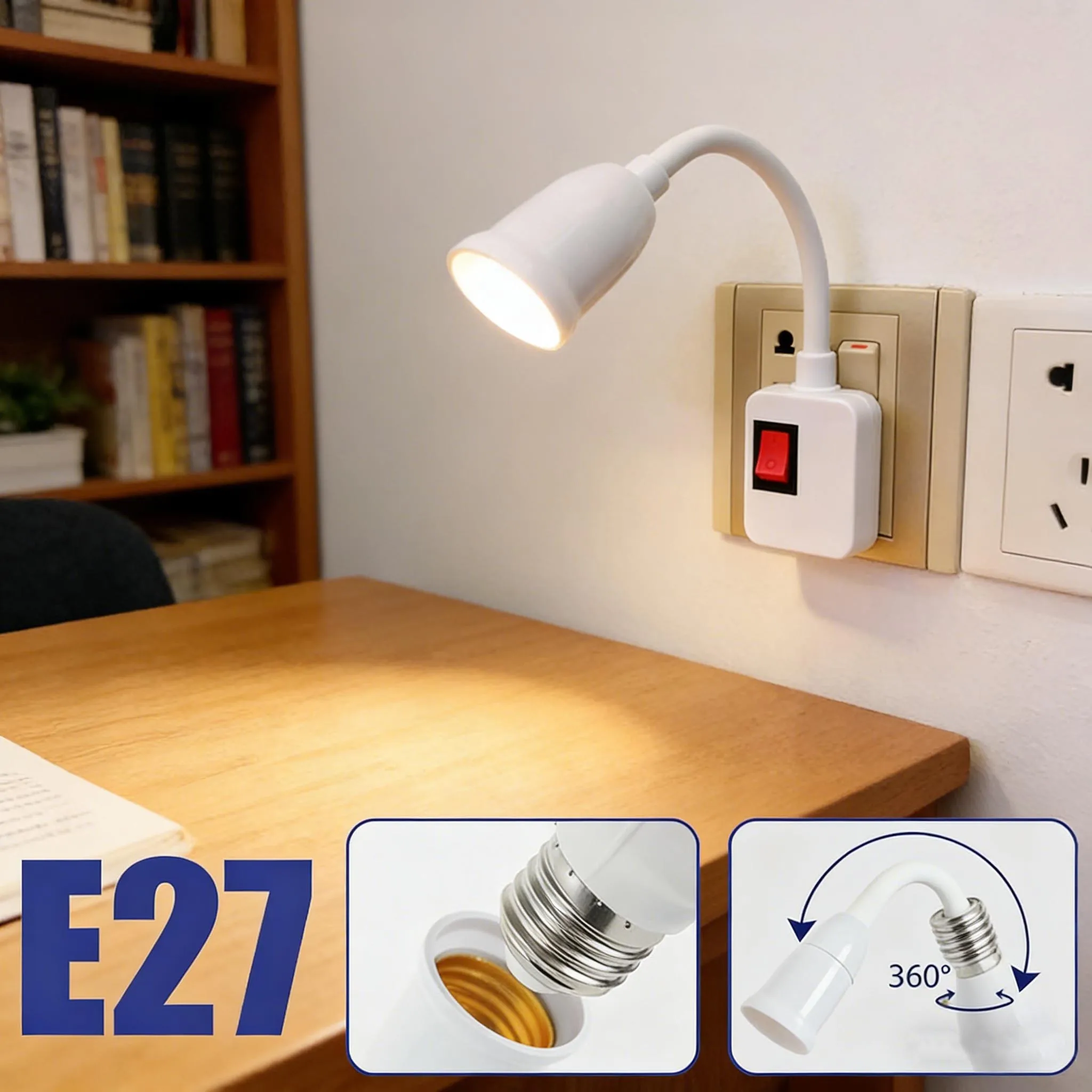 LED-Glühbirne E27 Fassung Lampensockel Adapter Konverter Mit Schalter EU US UK Stecker Energiesparende Lampe für Tisch E2