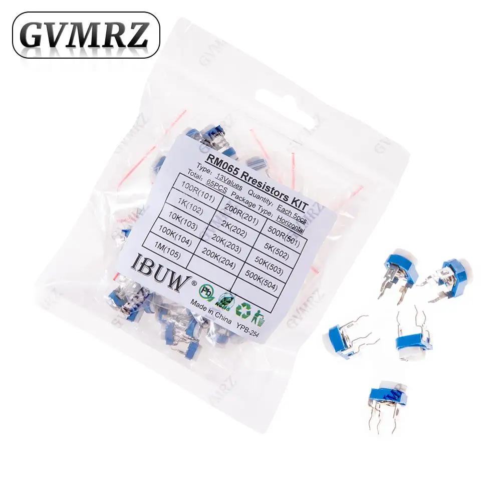 65PCS Trimmer Potentiometer RM063 Einstellbarer Widerstand 100R ~ 1M Potentiometer 1K 5K 10K 20K 50K 100K 1M Variable Widerstände 500K