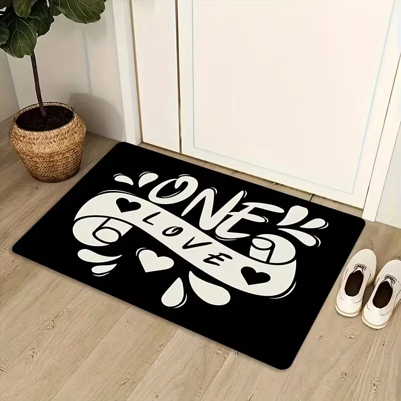 Fußmatte mit Herz-Schriftzug „One Love“, weicher, rutschfester Bodenteppich, romantischer, süßer Teppich mit Buchstaben-Dekor für den Eingangsbereich, Badezimmer, Küche, Geschenk