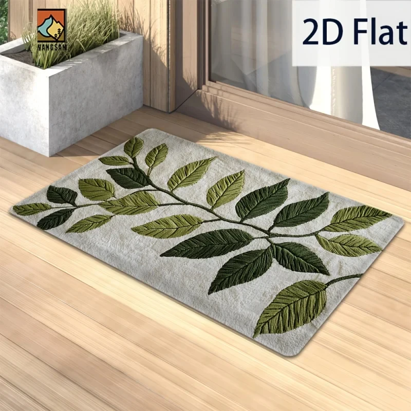 VIKAMA Shaggy-Fußmatte mit grünem Blattmuster, weiche, rutschfeste, saugfähige Bodenmatte, waschbarer Teppich für die Dekoration des Eingangsbereichs und des Wohnzimmers