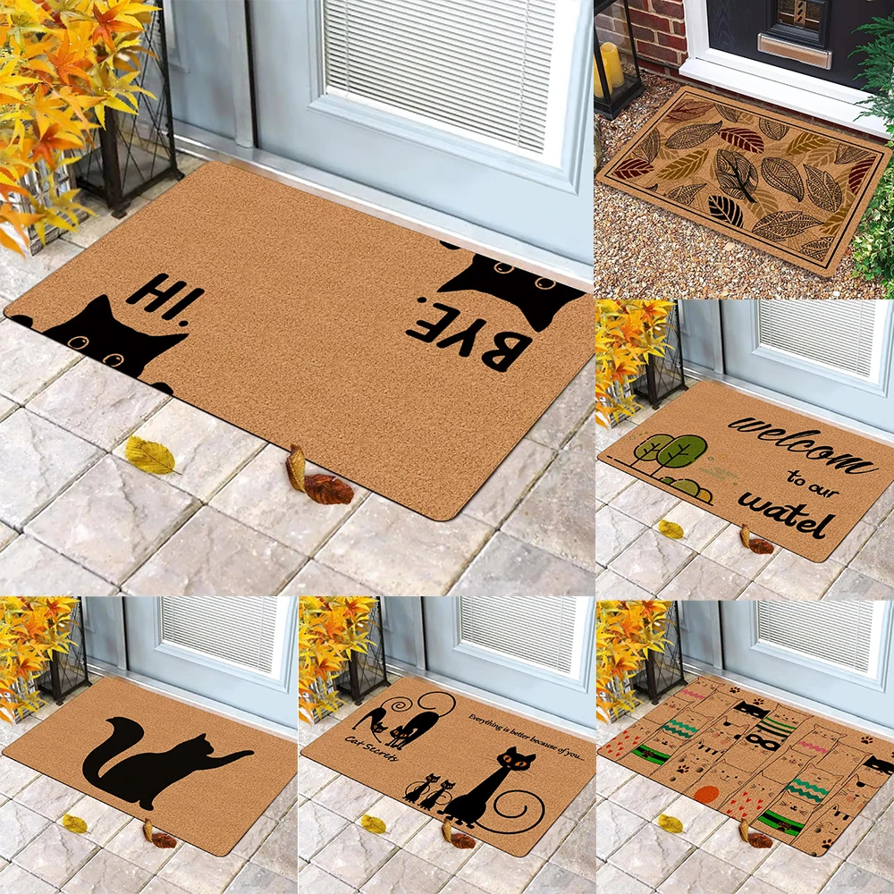 Niedliche Fußmatte mit Katzenmotiv und schwarzer Katze, Silhouette, Cartoon-Katzenmuster, weicher, dekorativer Eingangsbereich für Heimdekoration, Geschenke