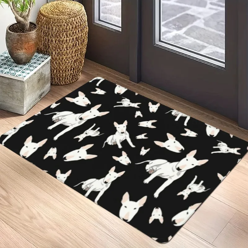 Bull Terrier Multi-Color Heads Teppichmatte, rutschfester Teppich mit Gummiunterlage für Haustierliebhaber, Heimdekoration, Knochendrucke, lustige Fußmatte
