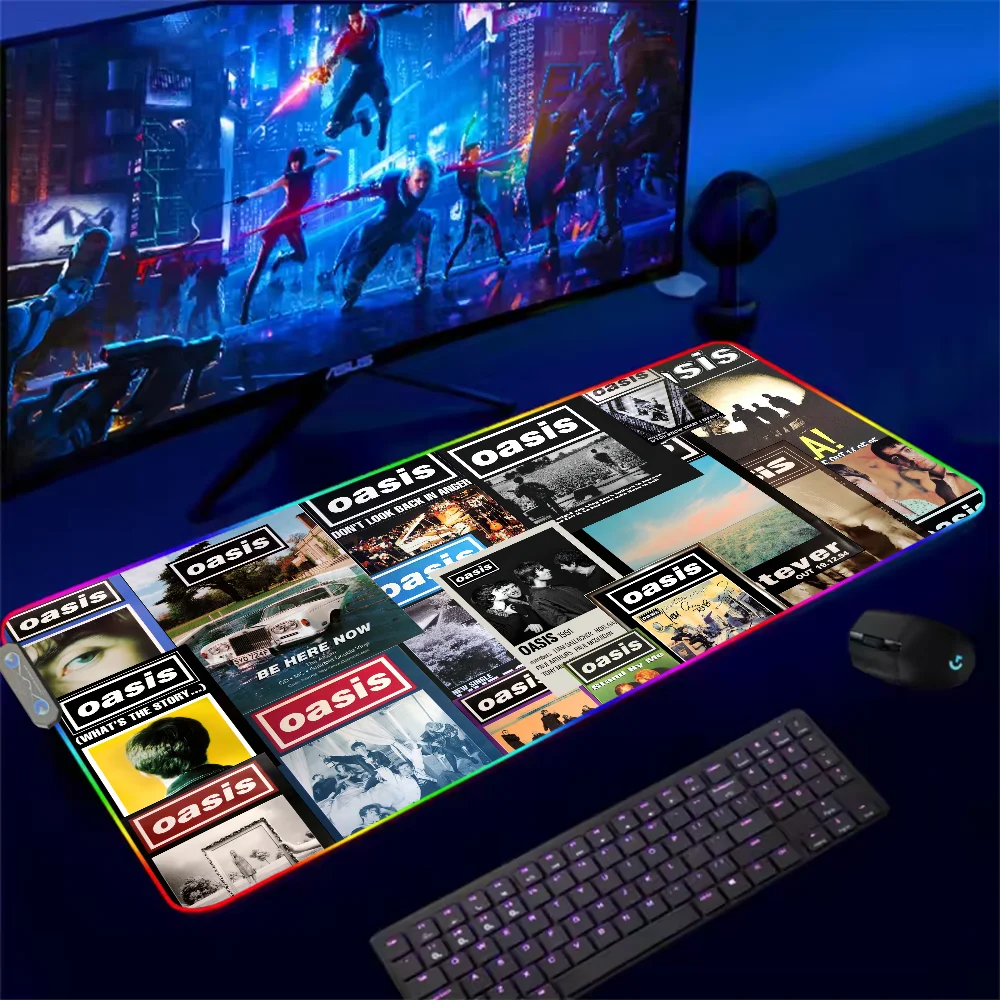 Rock Band O-Oasis Definitely Maybe für RGB-Mauspad Xxl Steelseries Laptop-Matte Gaming-Mauspad Tastatur mit Hintergrundbeleuchtung Mädchen-Tischpads