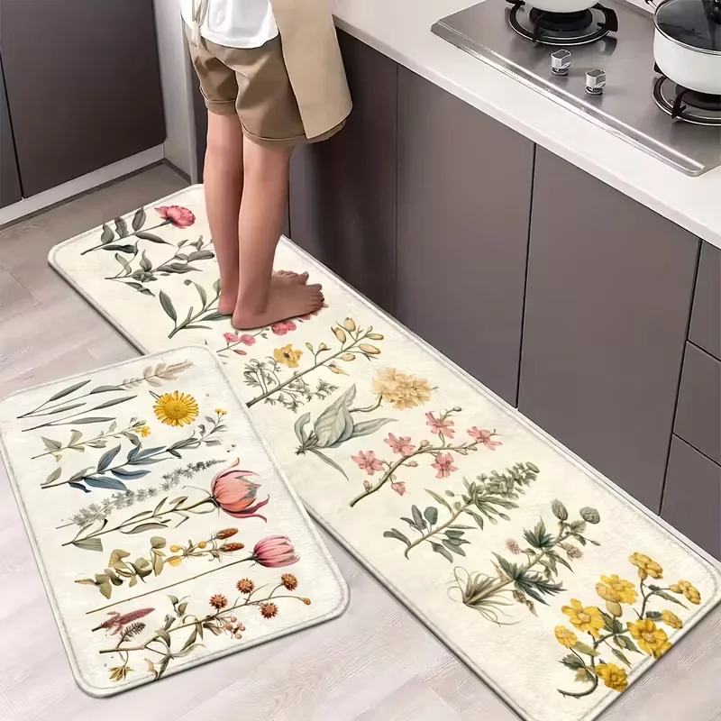 Florale Küchen- und Badezimmermatten, rutschfest, Läuferteppiche für Zuhause, Wäscherei – bequeme Stehkissen mit lebendigem Frühlingsdekor
