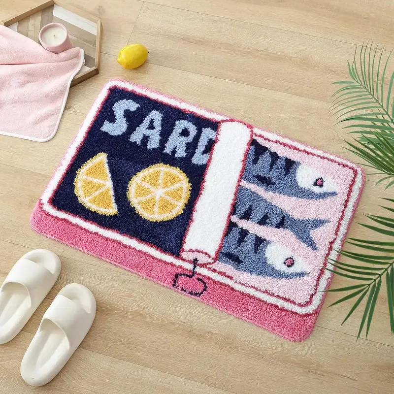 VIKAMA Cartoon-Sardinen-Badezimmermatte, weich, saugfähig, für Dusche, Bad, Wohnzimmer, Schlafzimmer, Eingangsbereich, Heimdekoration